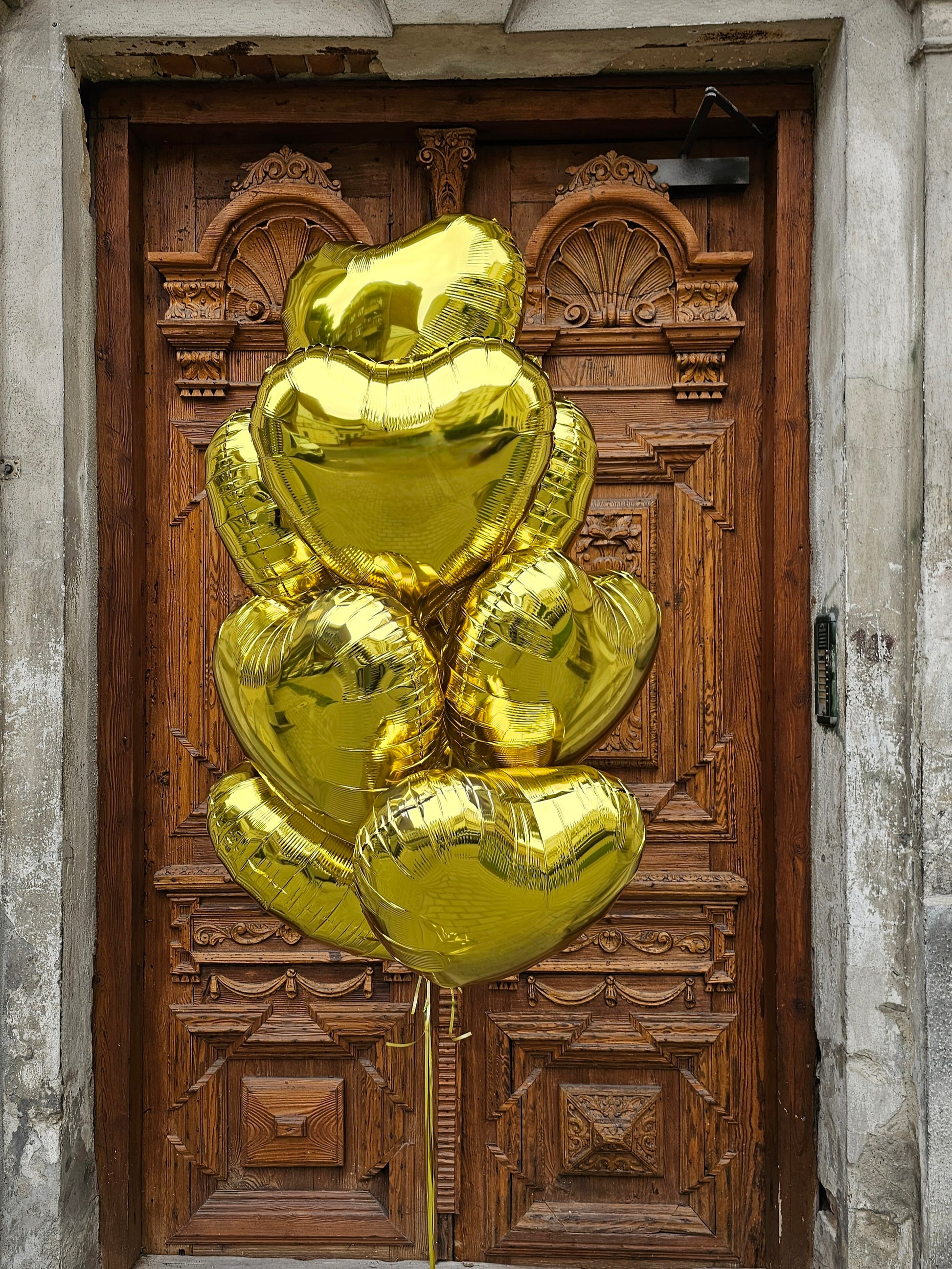 - 10 czerwonych balonów foliowych w kształcie serc w rozmiarze 18" (45 cm).
