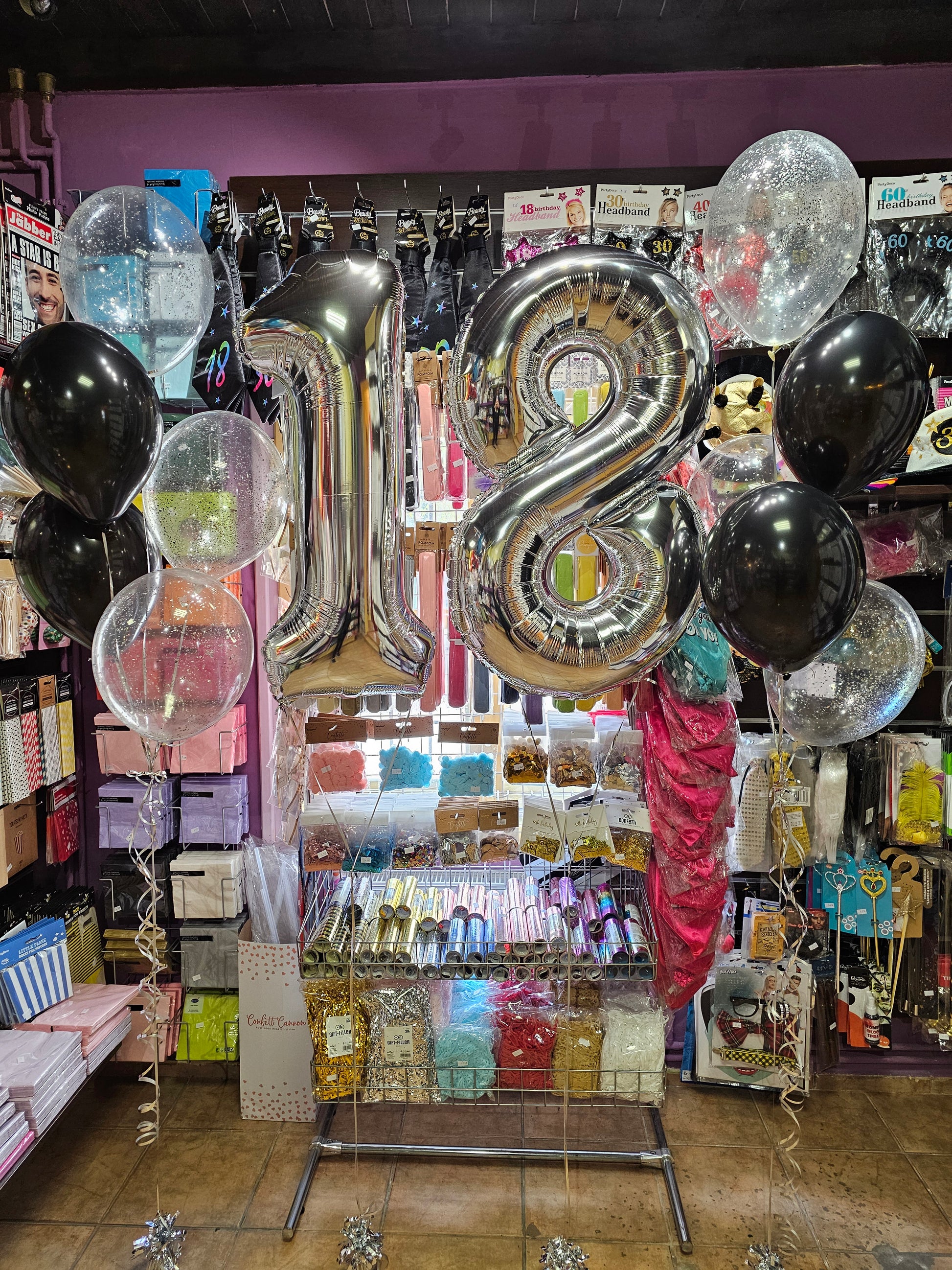 - balony foliowe w kształcie cyfr 1 i 8,
